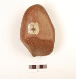 | Description / विवरण | A chopping tool made on basalt pebble, bifacial, flake scars visible on the surface and smooth surface. |
