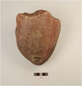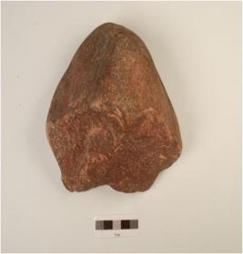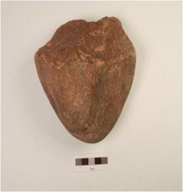 | Description / विवरण | A chopper made on quartzite pebble, cortex is visible at the butt end and flake scars visible on one side. |