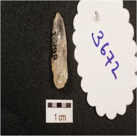 | Description / विवरण | A quartz crystal point, flake scars on the surface and use wear marks on the cutting edges. |