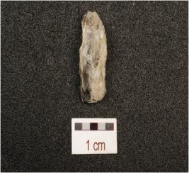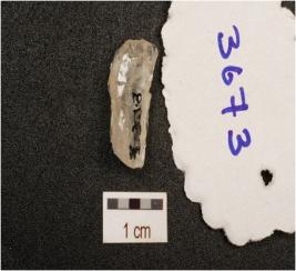 | Description / विवरण | A quartz crystal lunet, blade scars on the surface, rough surface and use wear marks along the cutting edges, |