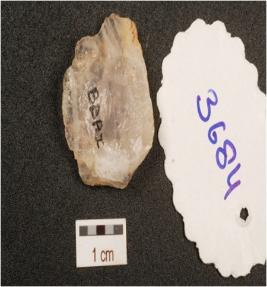 | Description / विवरण | A quartz flake prepared platform blade scars on the surface, cortex on the dorsal side and wavy cutting edges, |