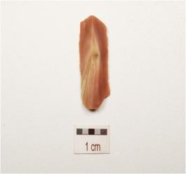 | Description / विवरण | A blade made on chert, broken both end and use wear marks along cutting edges, |