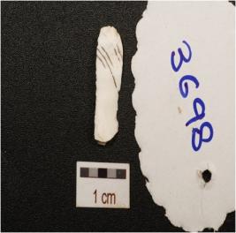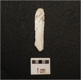 | Description / विवरण | A blade mid ridge dorsal side, prepared platform bulb on ventral side, partly retouch cutting edges and use wear marks. |