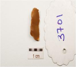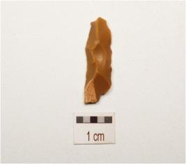 | Description / विवरण | A blade made on end struck flake, blade scars on the dorsal surface and use wear marks on the cutting edges, |