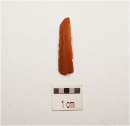 | Description / विवरण | A blade made on chert, midridge on the dorsal side, use wear marks along cutting edges and smooth surface both side, |
