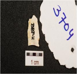 | Description / विवरण | A blade made on chert flake scars on dorsal side, partly retouch cutting edges and smooth surface, |