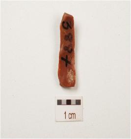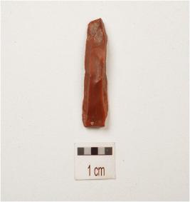 | Description / विवरण | Chert, parallel sided blade with two ridge on dorsal side, broken from both ends, slightly chipped off, use wear marks on working edge and partly trapezoidal in section. |