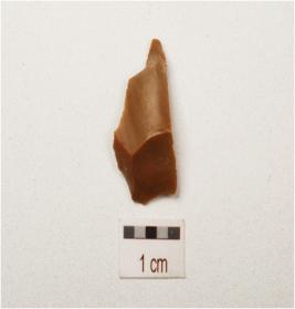 | Description / विवरण | Fragment of a chert blade with a mid ridge on dorsal side, broken along at proximal end, use wear marks on cutting edges and triangular in section. |