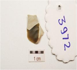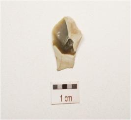 | Description / विवरण | A flake made on chert, bulb on ventral surface, used ware marks along the cutting edge, flake scars on dorsal surface and triangular in section. |
