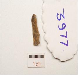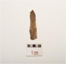 | Description / विवरण | A blade made on chert, end struck flake prepared striking platform prominent bulb on ventral surface, broken distal end, used ware marks on cutting edge, ridge on dorsal surface and triangular in section. |
