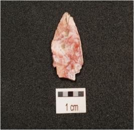 | Description / विवरण | A flake made on chert, used ware marks on cutting edge, flake scars on both surface ripple marks on ventral surface and rectangular in section, |