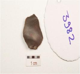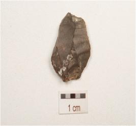 | Description / विवरण | A flake made on chert end struck flake, prominent bulb on ventral surface, used ware marks on cutting edge, flake scars on dorsal surface and triangular in section. |
