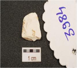 | Description / विवरण | A flake made on chert, used ware marks on cutting edge, flake scars on both surface and triangular in section. |