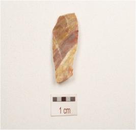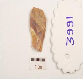 | Description / विवरण | A flake made on chert, end struck flake, prepared striking platform prominent bulb on ventral, use ware marks on cutting edge, flake scars on dorsal and triangular in section. |
