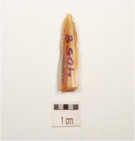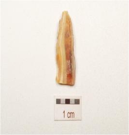 | Description / विवरण | A utilized flake made on quartz with smooth surface and use wear marks on edges. |