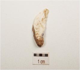| Description / विवरण | A chalcedony blade with mid ridge on dorsal, triangular in section and use wear marks on cutting edge. |