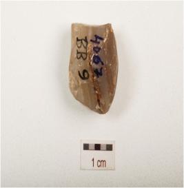 | Description / विवरण | A core made on chalcedony with prepared platform and seven blade scars on surface. |