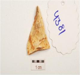 | Description / विवरण | A flake made on chert, flake scars on surface, prepared platform, prominent bulb on ventral side and sharp working edge. |