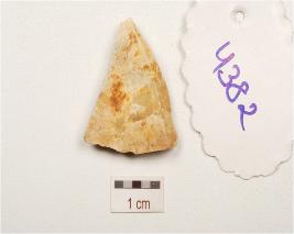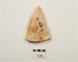| Description / विवरण | A flake made on chert, prominent bulb on ventral side, flake scars on surface and smooth surface. |
