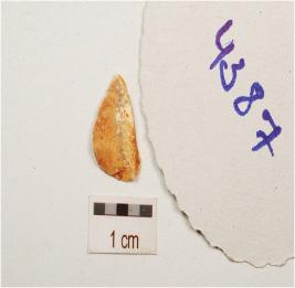 | Description / विवरण | A scraper made on chert , prominent bulb on ventral side, flake scars on dorsal side and use wear marks along the working edge. |
