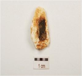 | Description / विवरण | A flake made on chert, flake scars on surface and prepared platform. |