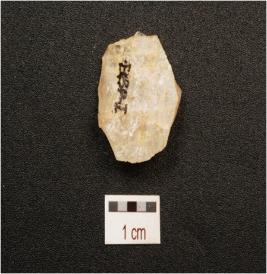 | Description / विवरण | A scraper made on quartz flake scar on dorsal side diffused bulb on ventral side prepared platform and use wear marks along the working edge. |