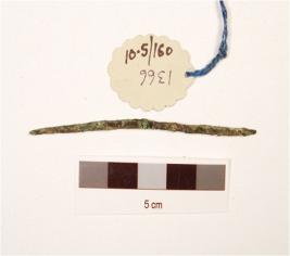 | Description / विवरण | Copper pin with two side pointed and corroded surface. |