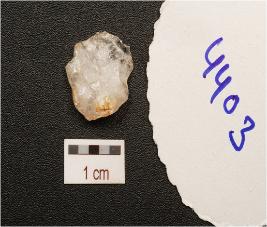 | Description / विवरण | A scraper made on quartz , use wear marks along the working edge, prepared platform, flake scars on dorsal side and prominent bulb on ventral side. |