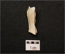 | Description / विवरण | A flake made on agate, bladscars on dorsal side, broken on both ends and use wear marks along cutting edge. |