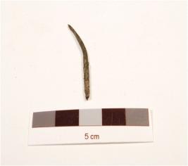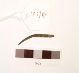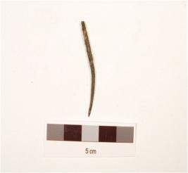 | Description / विवरण | Copper needle with a pointed end, other end broken, slightly bent and corroded surface. |