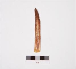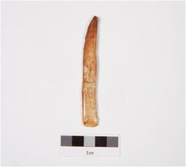 | Description / विवरण | A fragment of scraper tool made of bone, having sharp edge and well polished surface. |