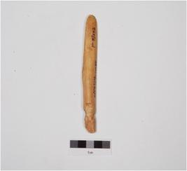 | Description / विवरण | A scraper made of bone, having sharp edge and well polished surface. |