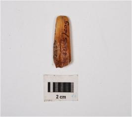| Description / विवरण | A scraper made of bone, half broken, having sharp edge and well polished surface. |