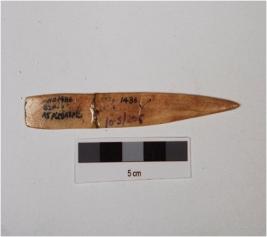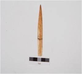 | Description / विवरण | A point made of bone, pointed at one end, flat and well polished surface. |