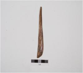 | Description / विवरण | A point made of bone, pointed at one end, flat and well polished surface. |