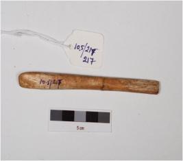 | Description / विवरण | A point made of bone, distal end broken and well polished surface. |