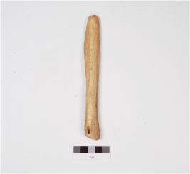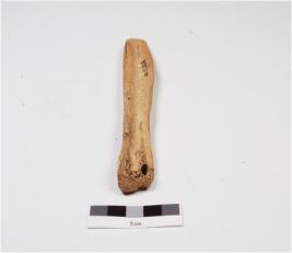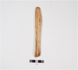 | Description / विवरण | A scraper made of bone having one end with sharp edge, natural hole on the other side with porous end and well polished surface. |