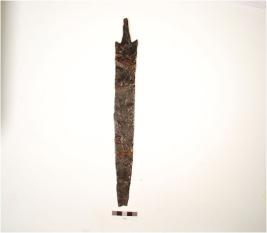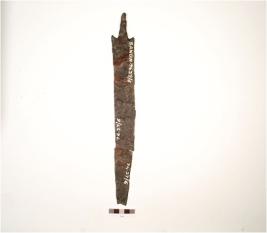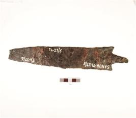 | Description / विवरण | Fragments of iron knife, broken into three pieces, uneven surface improper edges, thin in section with barb and tang. |