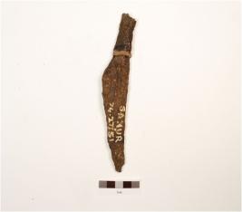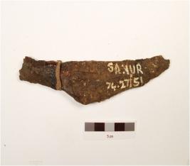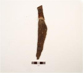 | Description / विवरण | Fragment of an iron sickle, broken into two pieces, uneven surface and edges. |