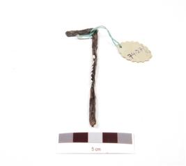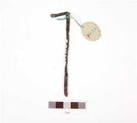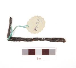 | Description / विवरण | A iron rod, round section, bent from top, rough surface and rusted. |