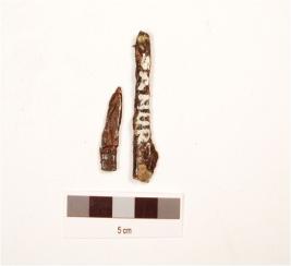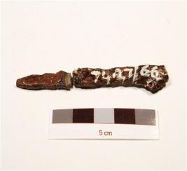 | Description / विवरण | Fragments of an iron nail, broken into two pieces, thin in section and uneven surface. |