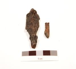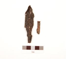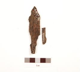 | Description / विवरण | Fragments of spearhead made of iron, broken into two pieces, pointed top, broken tang and uneven surface. |