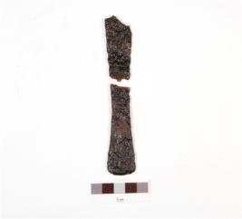 | Description / विवरण | Fragments of iron chisel, broken from middle, narrow from middle, broad and flat from top and bottom with rough surafce. |