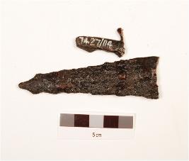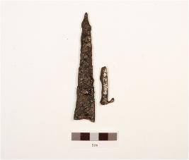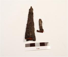 | Description / विवरण | Fragments of iron arrow head, broken into two pieces, pointed top and broken tang. |