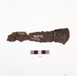 | Description / विवरण | A iron chisel, broken in three pieces, broad edge, flat surface and sections. |