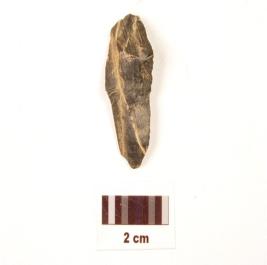 | Description / विवरण | A blunt blade made on chert, use wear marks sharp cutting edge retouched, triangular section, cortex surface. |