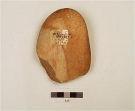 | Description / विवरण | Chopper made on quartzite pebble, one side flake scars, unifacial with flake scars, plano convex section. |