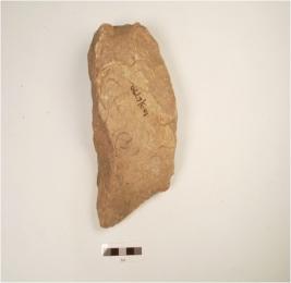 | Description / विवरण | Chopping made on quartzite, wavy cutting edges end, flake scars on both side, butt end in cortex side. |