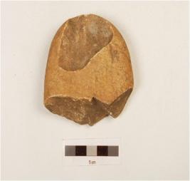 | Description / विवरण | Chopper made on quartzite pebble, one side flake scars, unifacial with flake scars, blunted cutting edge, cortex visible on butt end, plano convex section. |
