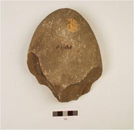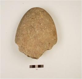 | Description / विवरण | A chopper made on quartzite pebble, flake scars on the interior end with wavy cutting edges, cortex on posterior end, convex in section. |